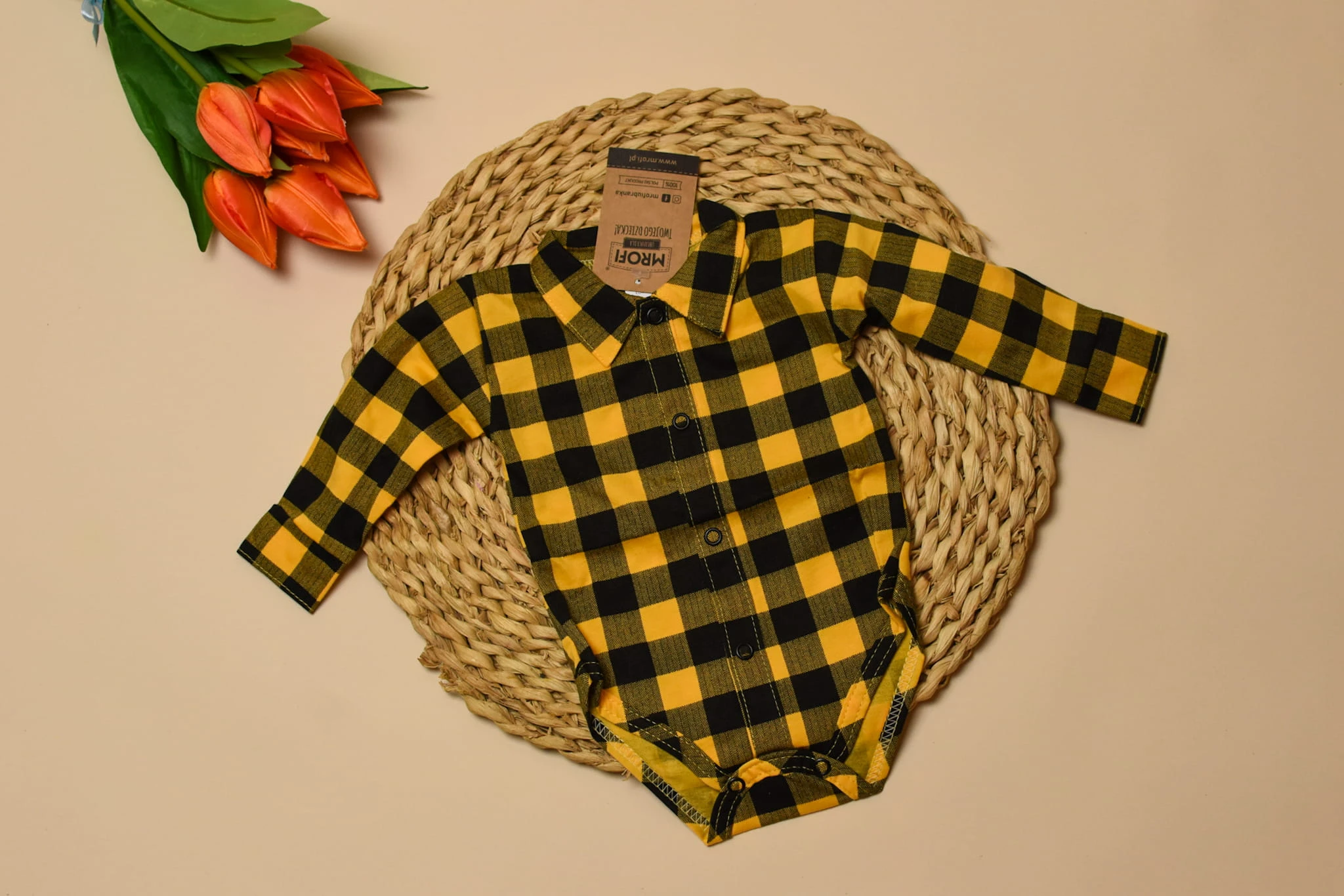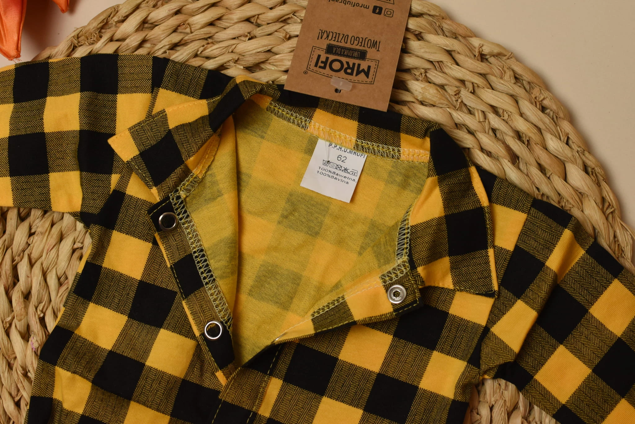 Bawełniane body koszulowe dla chłopca w żółtą kratę "Luke" Mrofi 62-80