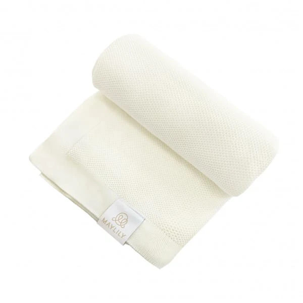 Kocyk bambusowy Mist - kremowy 90x90 cm – miękkość i elegancja dla maluszka MAYLILY