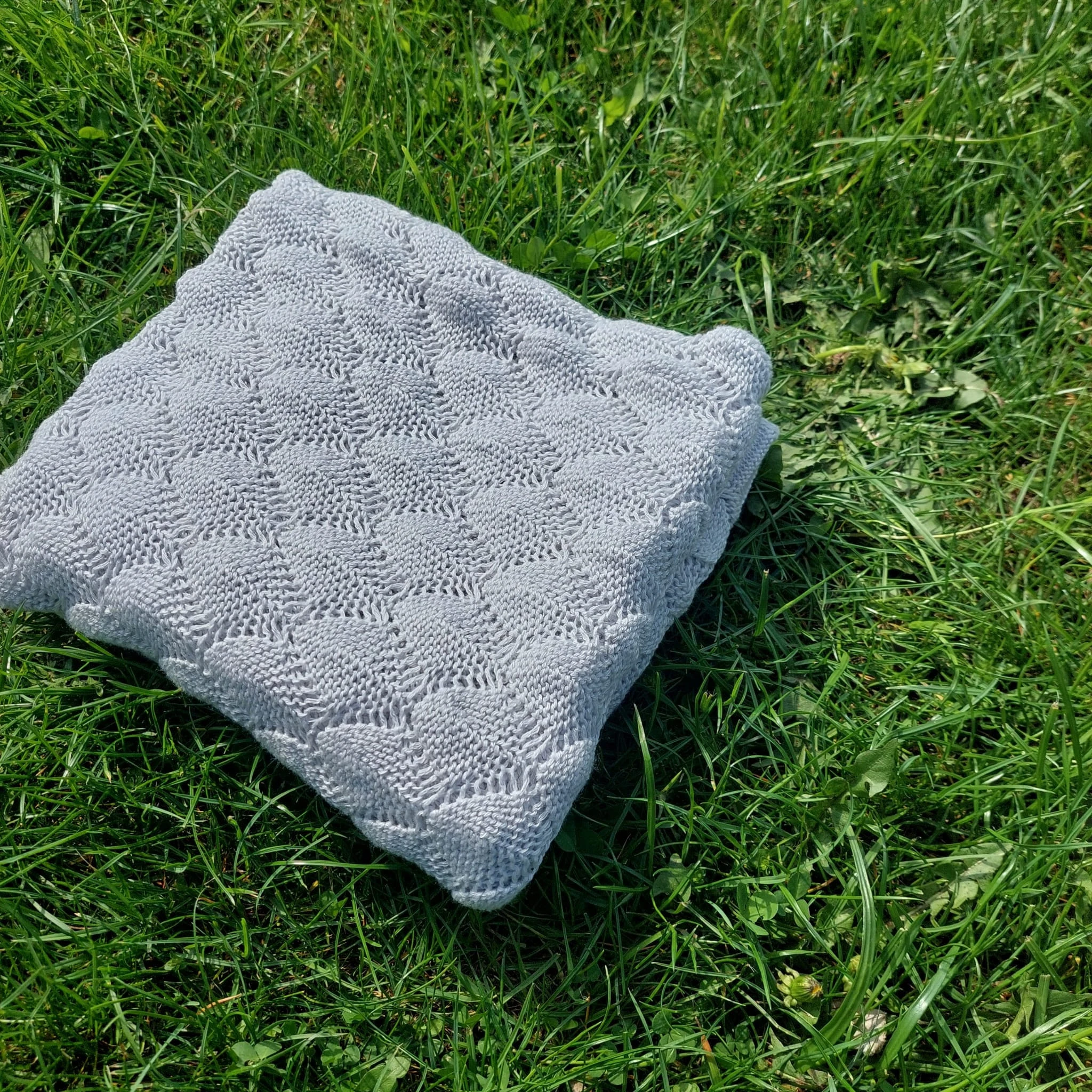 Kocyk ma wymiary około 95 cm x 90 cm, co czyni go idealnym zarówno do wózka, jak i łóżeczka. Jego ażurowa struktura dodaje nie tylko walorów estetycznych, ale także pozwala na lepszą cyrkulację powietrza, co jest niezwykle ważne dla delikatnej skóry niemowlęcia.