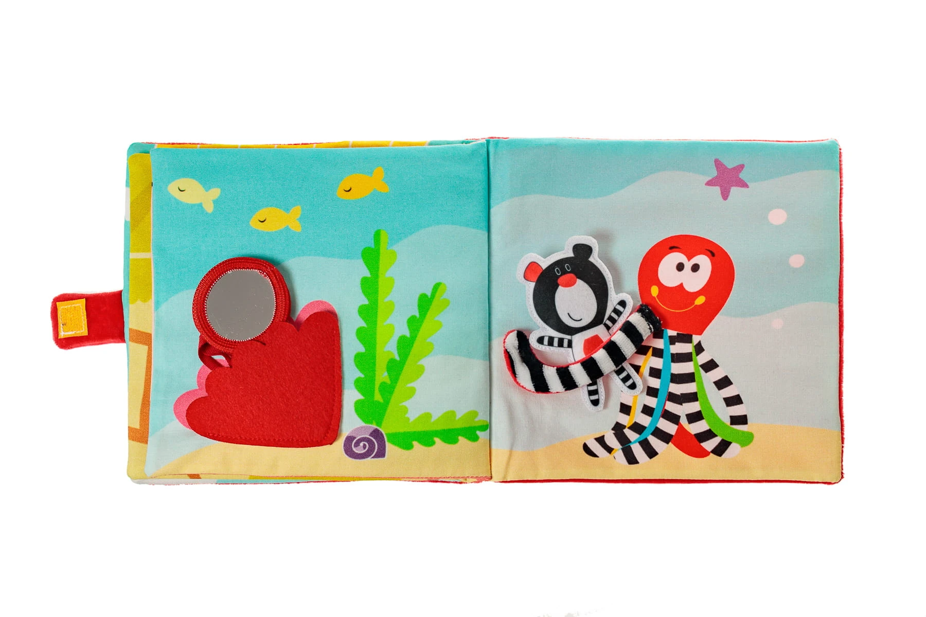 Przed pierwszym użyciem zaleca się delikatne przetarcie wilgotną ściereczką. W razie potrzeby książeczkę można czyścić ręcznie w letniej wodzie, unikając silnych detergentów. Nie zaleca się prania w pralce ani suszenia w suszarce, aby zachować jej kształt i strukturę materiałów.