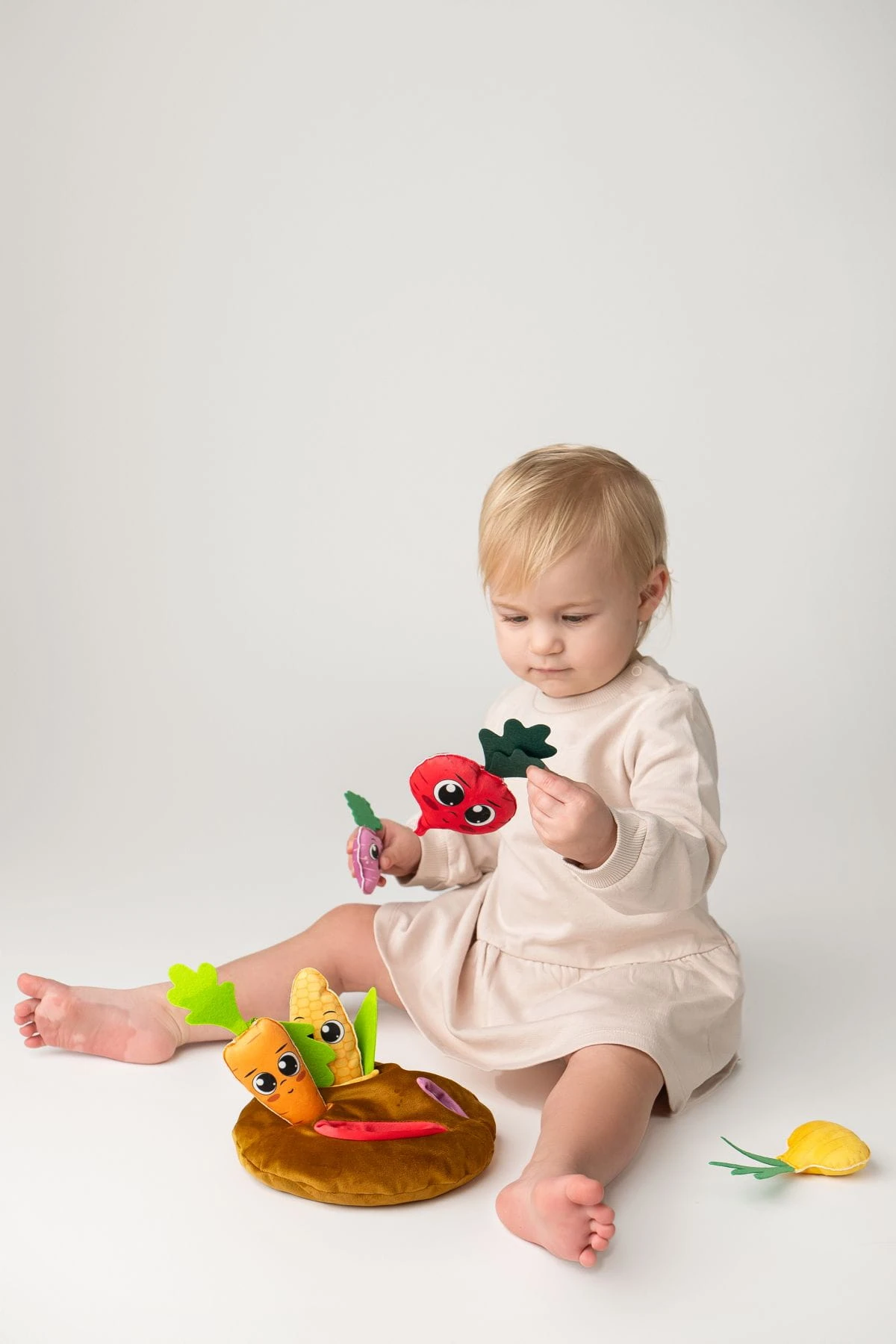 Zabawka jest przeznaczona dla dzieci powyżej 9 miesiąca życia. Wszystkie elementy zestawu są uszyte z przyjemnego w dotyku weluru. Kopiec wypełniony jest łuską gryki, dzięki której przypomina bardziej prawdziwą ziemię i zabawa jest znacznie ciekawsza.