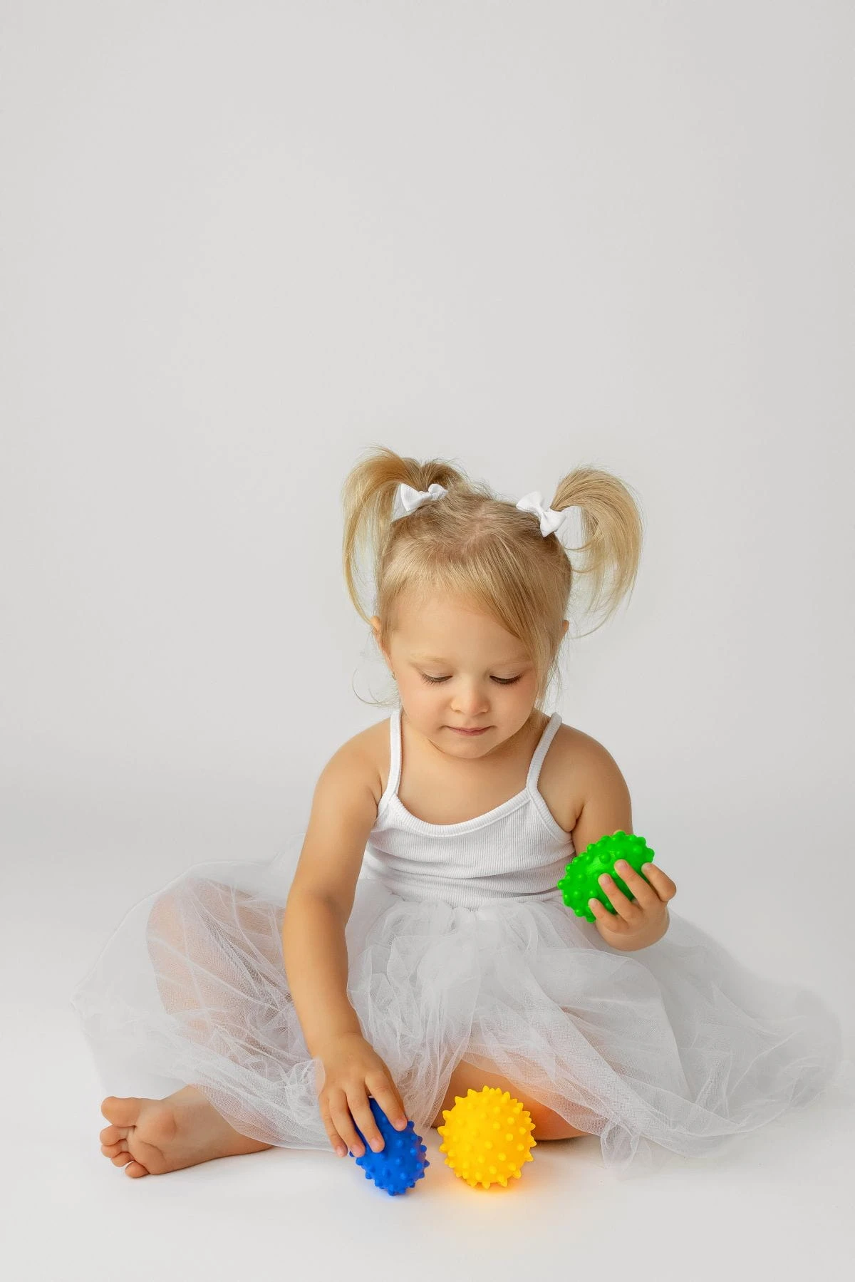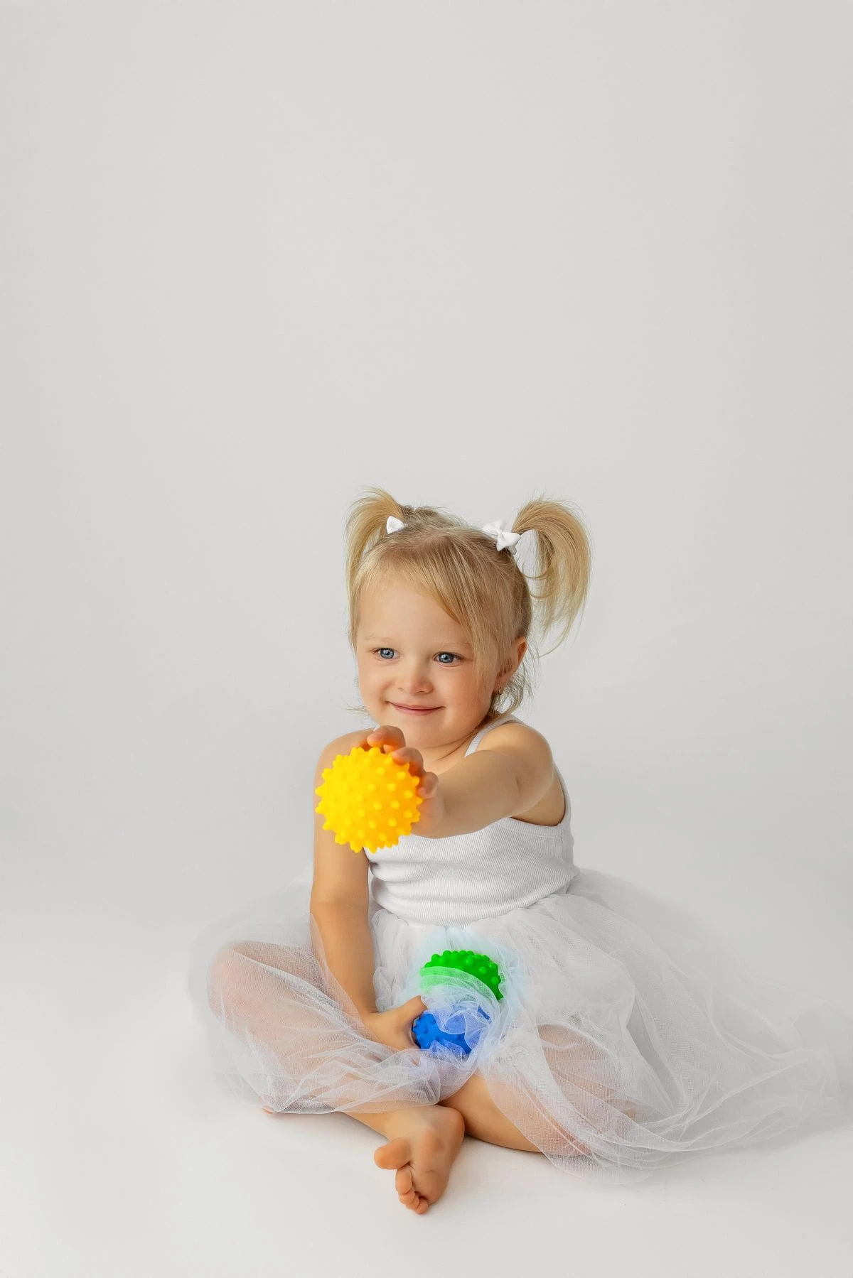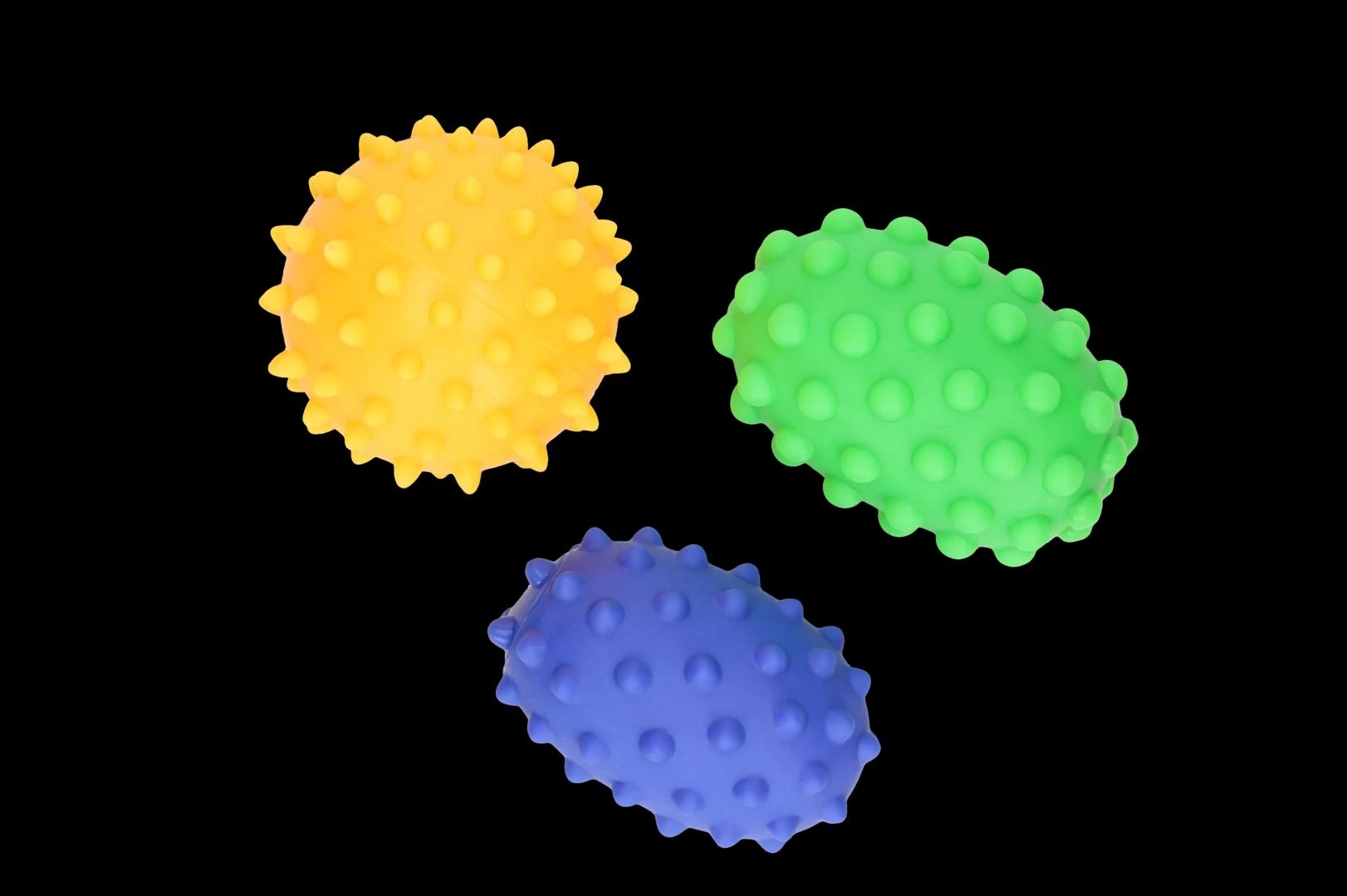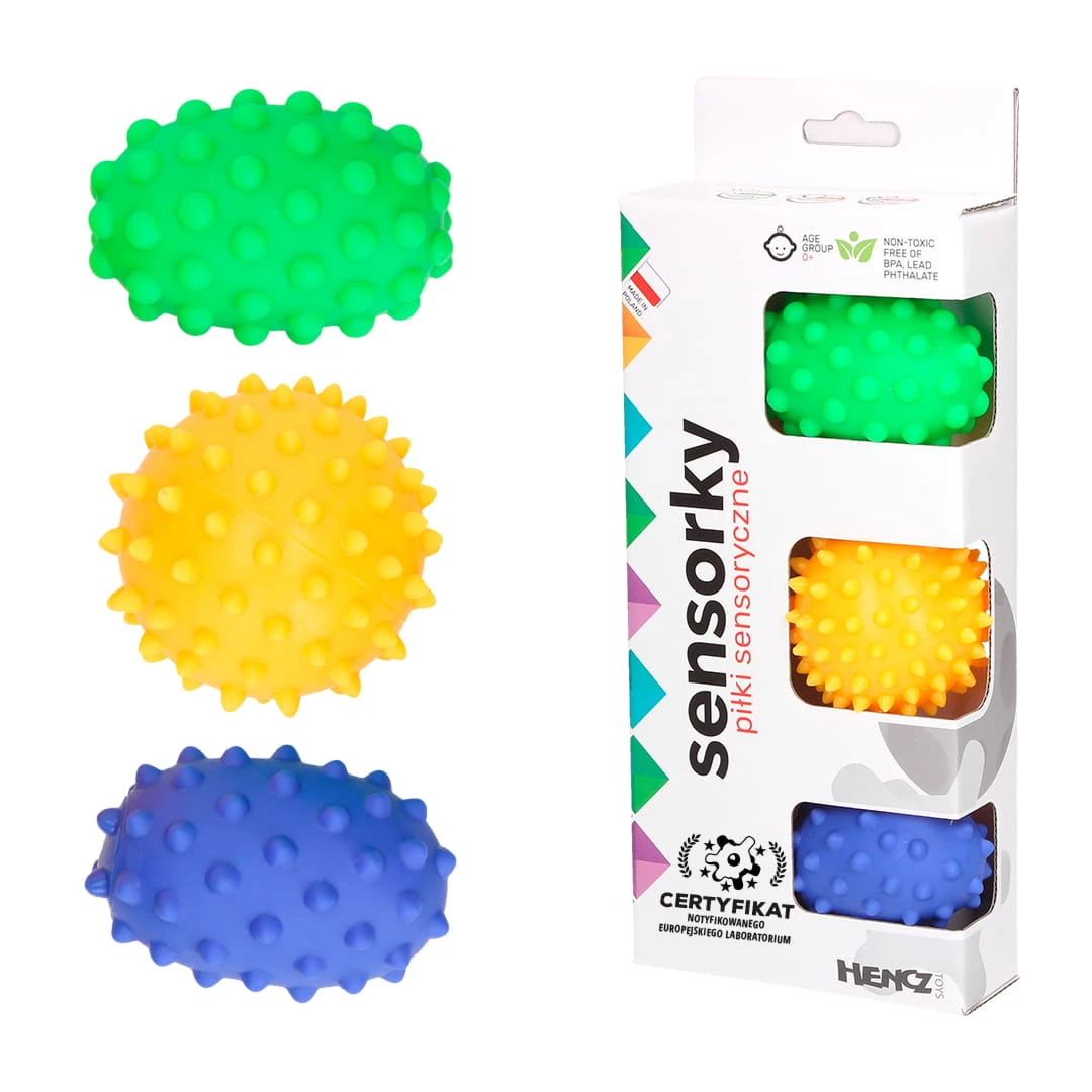 - Rozwój przez dotyk – różne struktury piłeczek pobudzają receptory czuciowe, wspomagając rozwój sensoryczny.